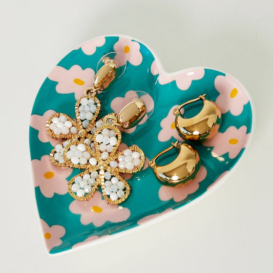 Sieradenschaaltje Flower Power Hart roze geel 11cm