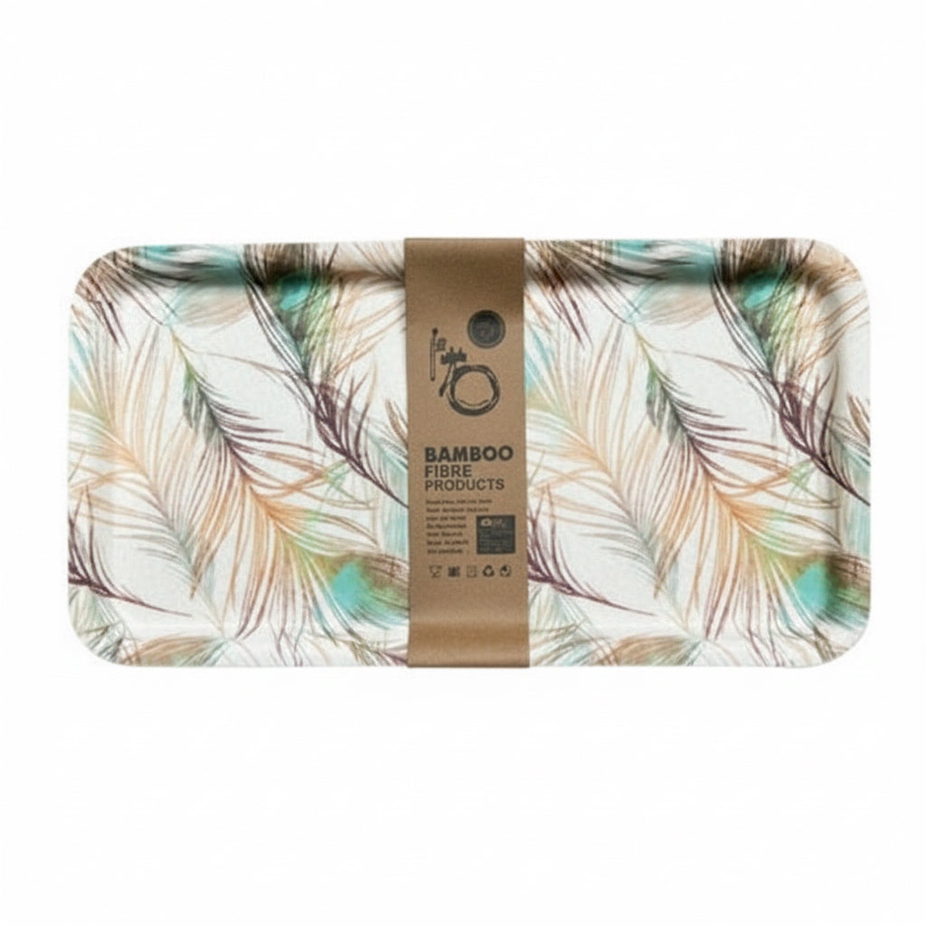 Leuk en handig dienblad van 30 x 15 cm, met een frisse en vrolijke pauw print. Het dienblad is grotendeels gemaakt van bamboevezels en daardoor licht van gewicht.