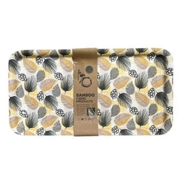 Leuk en handig dienblad van 30 x 15 cm, met een frisse en stijlvolle veren print. Het dienblad is grotendeels gemaakt van bamboevezels en daardoor licht van gewicht.