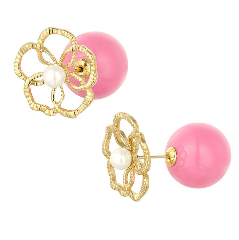 Deze bloem oorbellen met gekleurde achterkant zijn een echte musthave! De oorbellen zijn gemaakt van plastic, imitatieparel en stainless steel. De oorbellen hebben een afmeting van 2 x 2,1 x 2,96 cm.