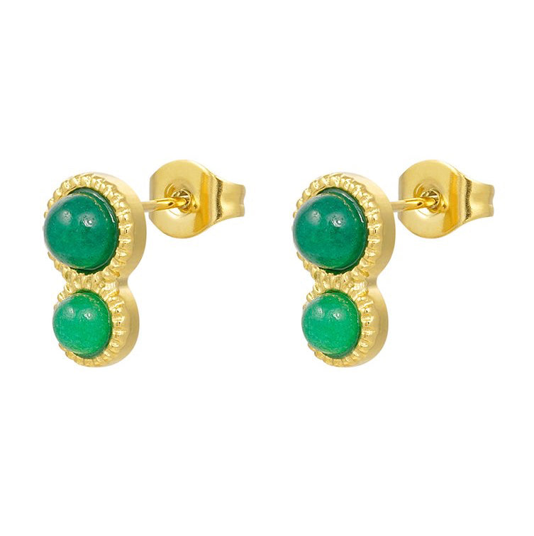 Oorstekers Basic Natuursteen goud groen
