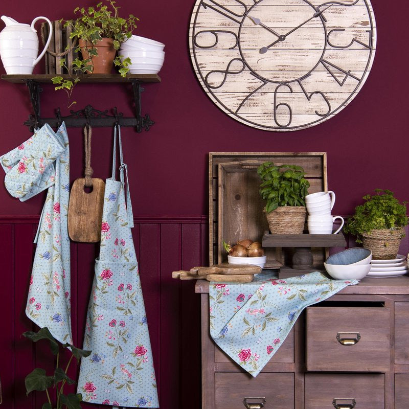Ovenwant van katoen met bloemenmotief. Een uniek, zelf ontworpen design dat perfect te combineren is met de bijpassende pannenlap. Een onmisbaar item in elke keuken. De ovenwant is voorzien van een handig lusje om op te hangen en heeft een afmeting van 30x18cm.