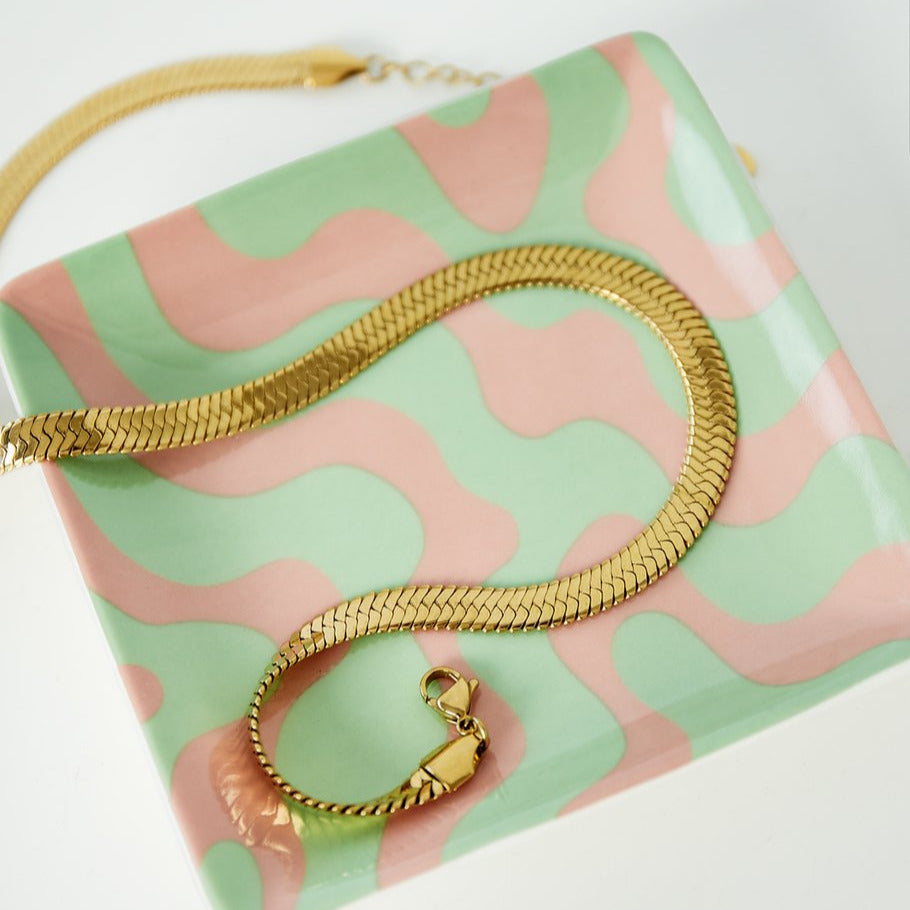 Sieradenschaaltje Dizzy Days Vierkant groen oranje 11x11cm