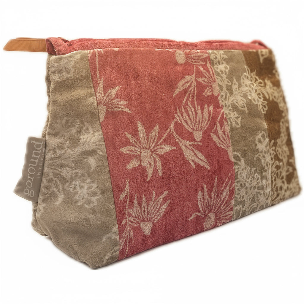 Lekker grote toilettas met gekleurde banen en daaroverheen een rustige print. De rits en zipslider zijn in contrasterende kleuren wat dit etui nog vrolijker maakt. Superleuk om cadeau te doen, maar misschien wil je deze toilettas ook wel voor jezelf! De binnenkant van dit etui is gemaakt van linnen kleurige katoen. De toilettas heeft een afmeting van 30x19cm en heeft een ritssluiting.